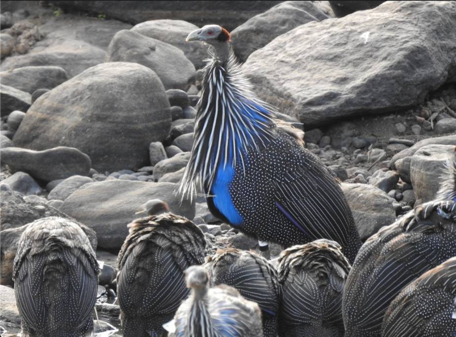 From our early observations, we noticed that the vulturine guineafowls comprised multiple social groups. We also noticed that groups regularly encountered other groups, moving together during the day and roosting at night.